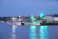 花咲港のサンマ漁船 朝