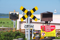 原生花園駅の踏切注意看板