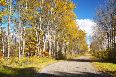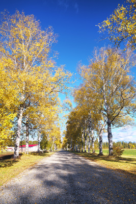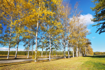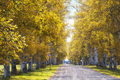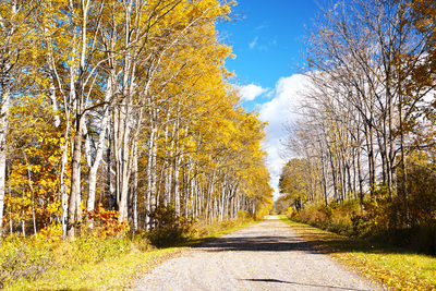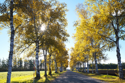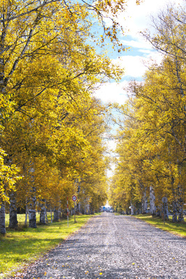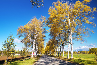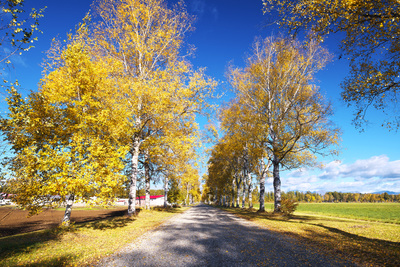 白樺の紅葉と道 十勝牧場