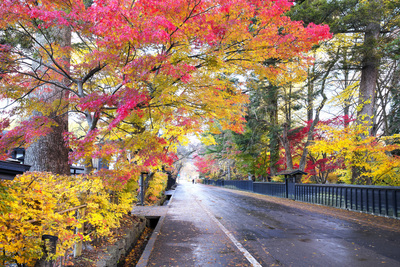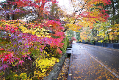 モミジの紅葉と道