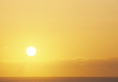 夕暮れの太陽と海