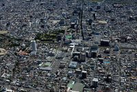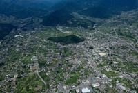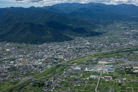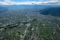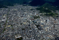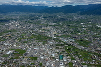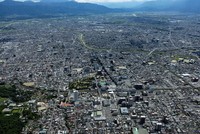 甲府駅と甲府市の街並みより甲府盆地