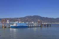 秋の琵琶湖と比叡山と遊覧船