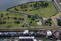 荒川,隅田川合流地区より東京の街並み