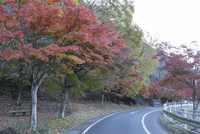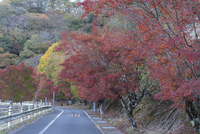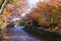 モミジの紅葉と道