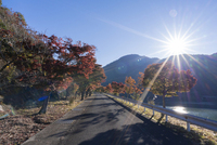 モミジの紅葉と道と太陽