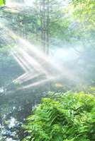 神の子池の朝霧と斜光